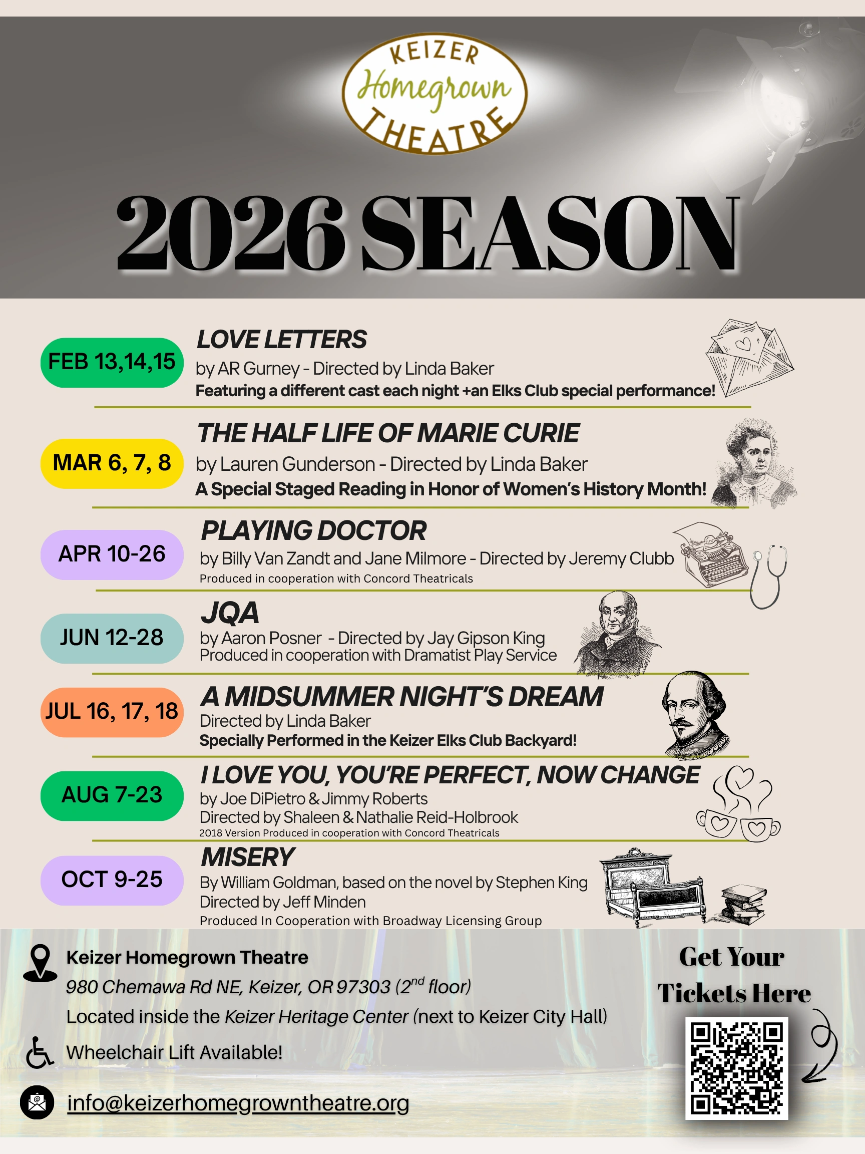 Keizer Homegrown Theatre is a theatre for everyone. We enrich our community through outstanding theatrical experiences that entertain, inform, and inspire empathy and encourage conversation.